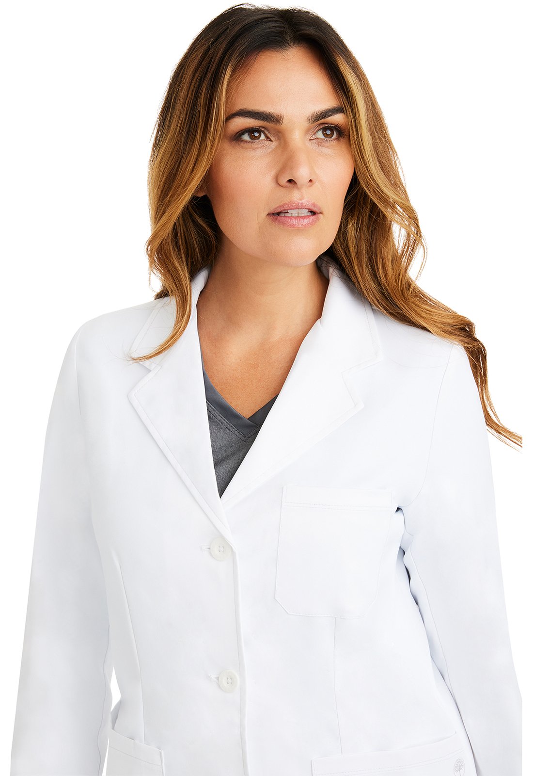 This minimalist consultation-length coat has all the classic features of a lab coat, from the notched lapels to the tailored fit, along with the soft and stretchy fabric that Healing Hands is known for.